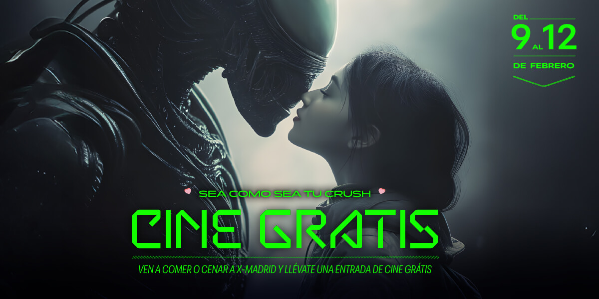 Del 9 al 12 de febrero 2026 ven a comer o a cenar a cualquiera de los establecimientos de restauración de X-Madrid, haz un gasto mínimo de 25€ y llévate una entrada de cine para las salas Ocine X-Madrid GRATIS.